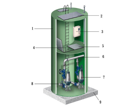 攪拌罐車倒車到工位后,砂石分離機主機、罐車加水泵、設備沖洗泵啟動工作,加水......更多>>- 一體化預制泵站